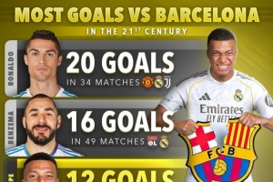 本世纪对阵巴萨进球榜:
