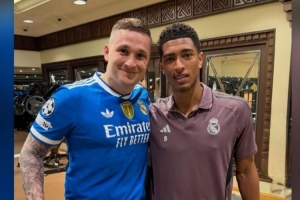 体育资讯1月11日讯 皇马中场贝林厄姆更新社媒动态,转发与一位波兰球迷的合照。