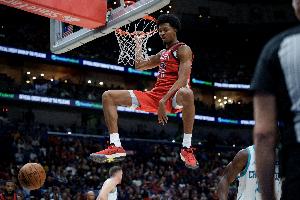 此役,墨菲出战38分钟,投篮22中15,三分11中5,罚球6中6,空砍41分9篮板3助攻1抢断,得分平生涯最高纪录。