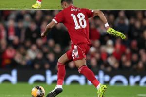 体育资讯01月13日讯 足总杯第3轮,利物浦4-1击败巴恩斯利。比赛中出现了有趣的一幕,利物浦边锋加克波一只脚没穿鞋参与反击。