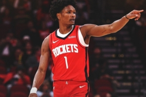 赛后,火箭官方发布赢球海报,阿门·汤普森成为封面人物。
