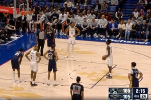 GIF-最后2分钟打平,锡安对德雷克·鲍威尔三分犯规3罚2中