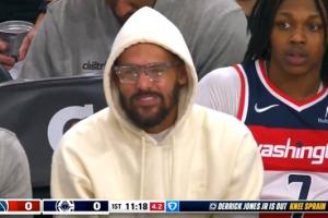 体育资讯01月16日讯 1月10日,老鹰官宣了特雷·杨换CJ+基斯珀特交易,当天,特雷·杨就现身奇才主场为新队友们加油。