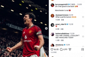 马奎尔社媒写道:Oh,曼联归来的感觉太棒了🤩❤️曼彻斯特是红色的 🔴