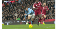 体育资讯11月10日讯 曼城vs利物浦第15分钟,B席踉跄前插追球,一脚铲翻范戴克。