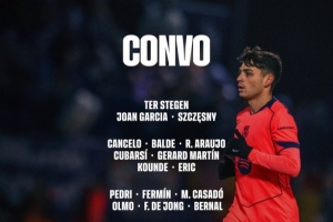 体育资讯1月18日讯 北京时间明天凌晨4点,巴萨将在西甲第20轮比赛中客场对阵皇家社会,巴萨公布了此役的球员名单。传闻将租借加盟赫罗纳的特尔施特根在列,拉菲尼亚右大腿受伤缺席。