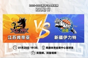 1月20日19:35,2025-26赛季CBA常规赛第十七轮,江苏肯帝亚将迎来转战南通赛区的首场比赛,再战新疆伊力特。
