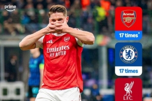 1、阿森纳、切尔西,17次