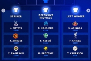 中锋:马特塔(水晶宫)、齐尔克泽(曼联)、恩内斯里(费内巴切)